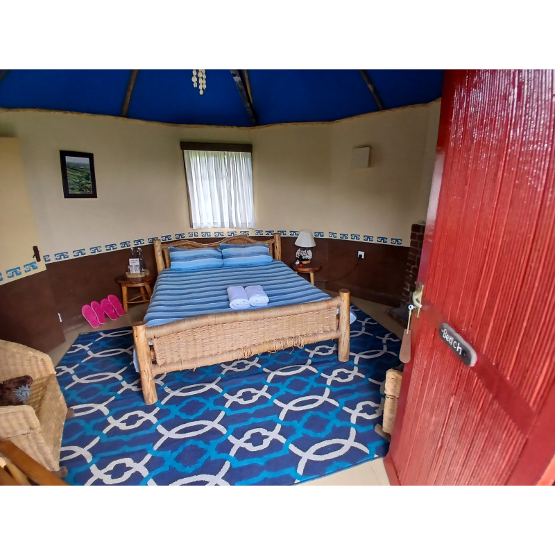 Our 8 cottages are delightful round huts designed in the style of traditional huts. Each cottage is served by a boiler system to ensure you get hot water and every room has a fireplace for warmth on cold nights. The room layout is a single cozy room with an attached bathroom and toilet. These rooms are perfect for an individual or 2 adults. A baby cot can be added on request.